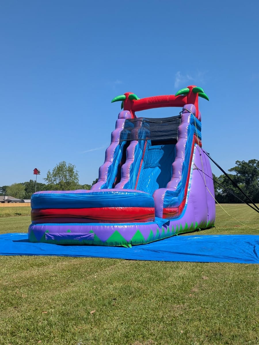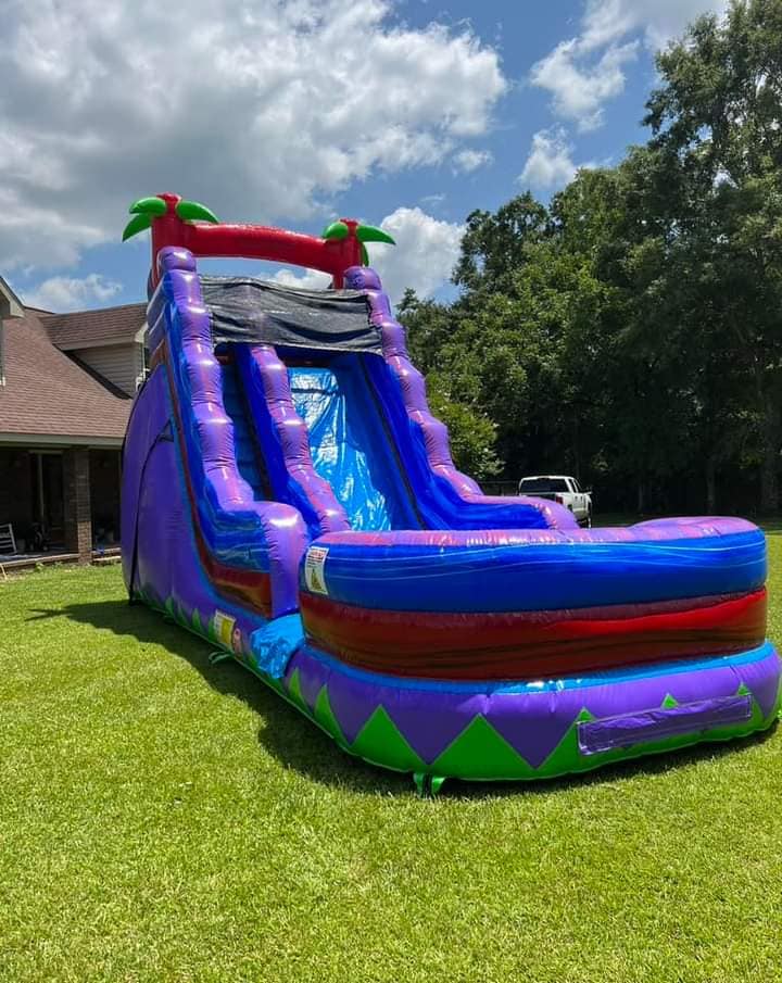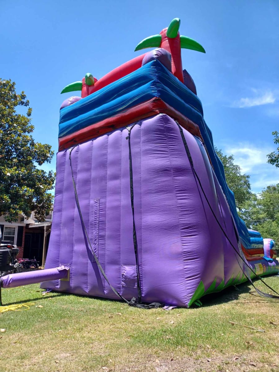 Looking to elevate your next outdoor event? The 20Hx29Lx13W Single Lane Purple Haze is the ultimate water slide experience, perfect for creating unforgettable memories with friends, family, and guests. With its 20-foot height and vibrant purple, red, and blue design, this water slide features cool palm trees at the top, adding a tropical vibe to any gathering. Get ready for hours of laughter, excitement, and refreshing fun in the sun! π΄π¦