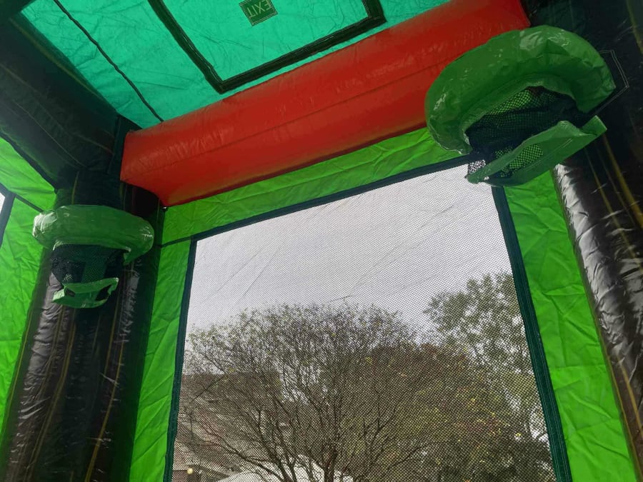 - Safety netting, soft landing zone, and continuous blower included. π